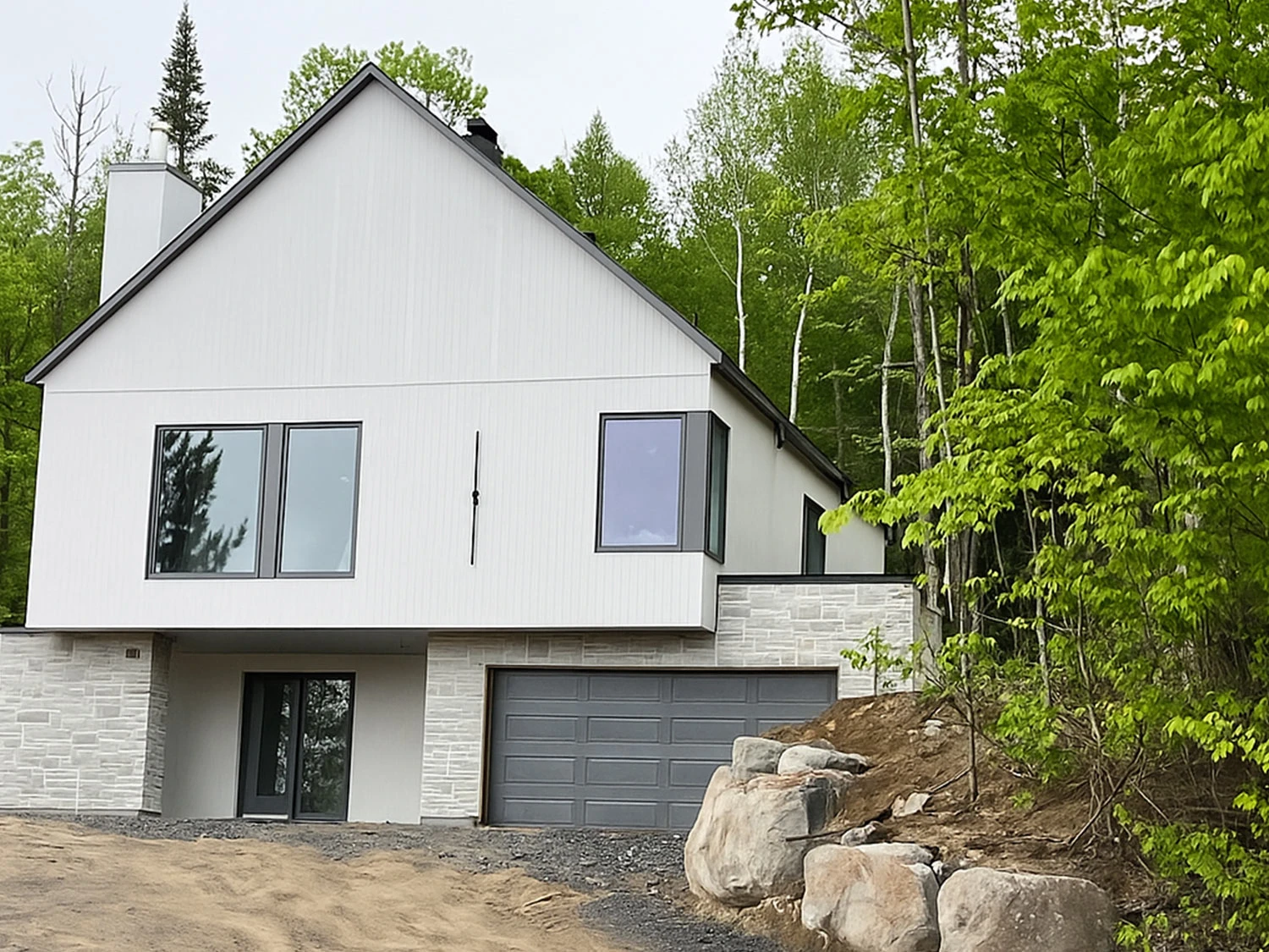 Le Projet Baldy met en lumière notre savoir-faire en construction de maison neuve contemporaine. Située en pleine nature des Laurentides, cette propriété offre une vue imprenable sur les montagnes et un design moderne épuré, où le blanc et la pierre naturelle créent une atmosphère lumineuse et chaleureuse. Notre équipe, experte en construction de charpente, a réalisé une structure robuste et sécuritaire. Chaque espace a été pensé pour combiner fonctionnalité, confort et esthétisme, faisant de cette maison contemporaine un lieu où la nature et l’architecture se rencontrent harmonieusement.